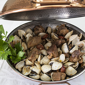 Cut the whole shoulder pork into cubes and season with salt, garlic, pepper, bay leaf, paprika and the olive oil. Sprinkle with white wine and leave to marinate a few hours (if possible eve). Place the clams in water to ...
